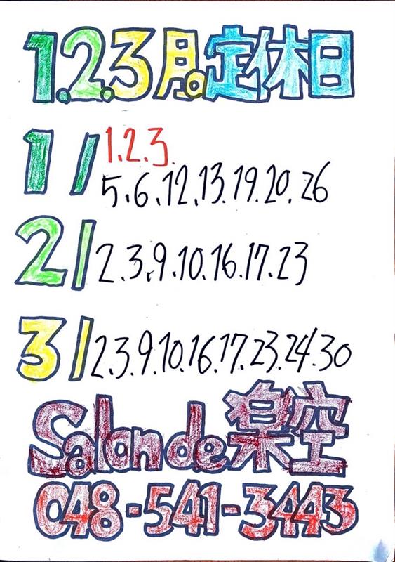 2026年1月から3月の営業カレンダー